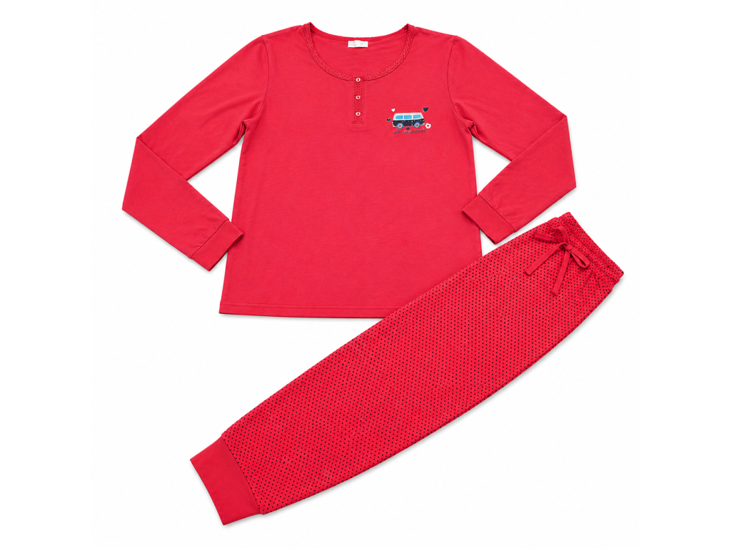 Pohodlné dámské pyžamo z 80% bavlny a 20% polyesteru. Měkké, prodyšné a odolné, ideální pro každodenní nošení i kvalitní spánek.