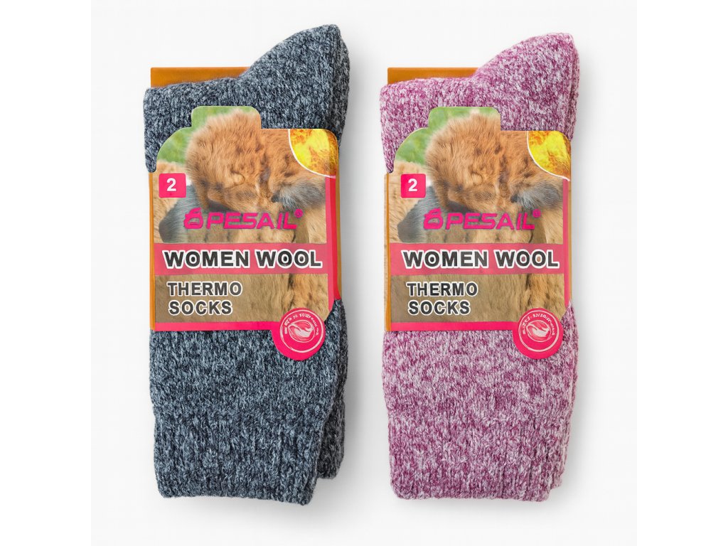 Teplé Thermo Ponožky – 2 páry (růžová + šedé)