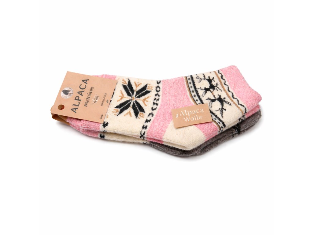 Objevte luxusní teplé ponožky Alpaka, sada obsahuje 3 páry, dva páry jsou do růžova a 1 pár je do šeda. Ponožky které patří mezi nejkvalitnější zimní ponožky na trhu. Díky složení 100 % vlna (alpaka) poskytují výjimečnou hřejivost, prodyšnost a dlouhou životnost. Ideální pro zimní období, chladné podmínky i každodenní nošení.