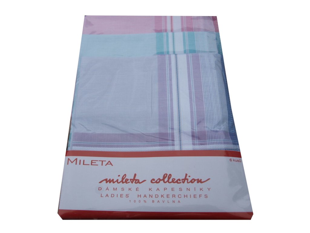 Dámské bavlněné kapesníky od českého výrobce. V sáčku je poskládáno šest kusů kapesníků, vždy po dvou barvách. Rozměr dámských kapesníků je cca 30x30 cm.