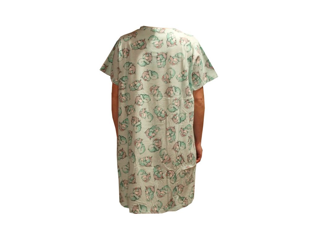 Dámská noční košile určená především pro maminky je velice příjemná na nošení díky materiálu 100% bavlna. Noční košile je šitá, aby rostoucí břísko v těhotenství mělo dostatek prostoru. Noční košile je barvy tyrkysové, výstřih u krku je do O. Noční košile je s motivem medvídka.