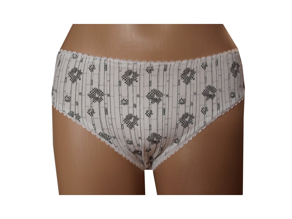 Dámské kalhotky klasického střihu pro pohodlí každé ženy. Kalhotky jsou obšité ozdobnou gumičkou, vyrobené z materiálu : 92% bavlny a 8% elastanu o gramáži 160g/m2. Skvěle padnou, nesjíždí.