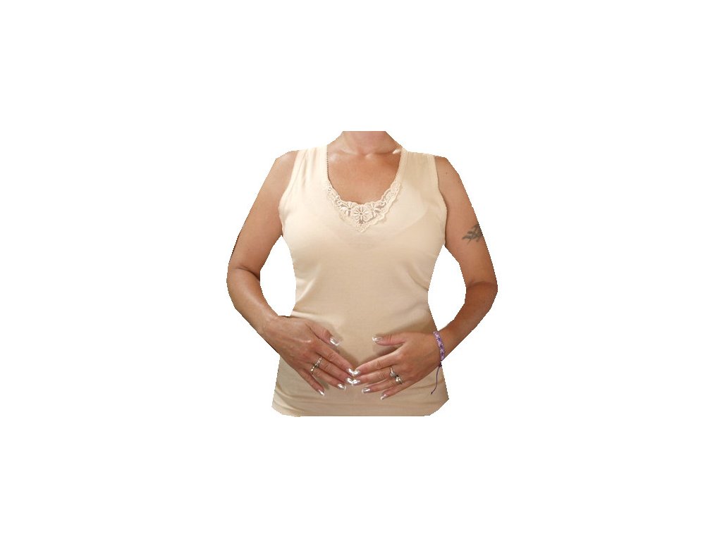Košilka dámská vyrobená ze 100% bavlny je velice příjemná na nošení.Košilka je barvy tělovou. Košilka má silnější ramínka a u krku krajku.
