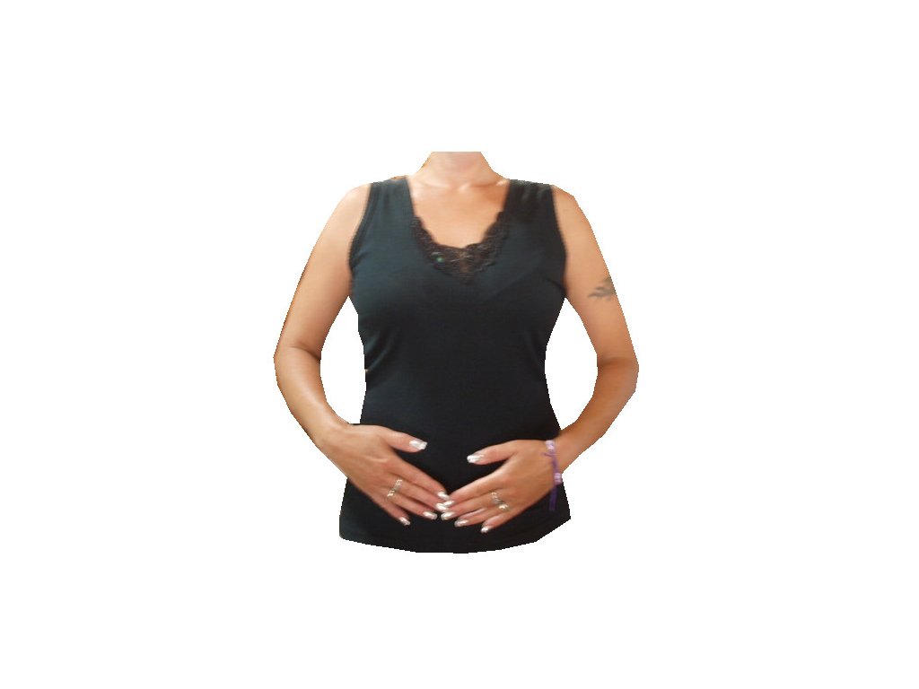 Košilka dámská vyrobená ze 100% bavlny je velice příjemná na nošení.Košilka je barvy černou. Košilka má silnější ramínka a u krku krajku.