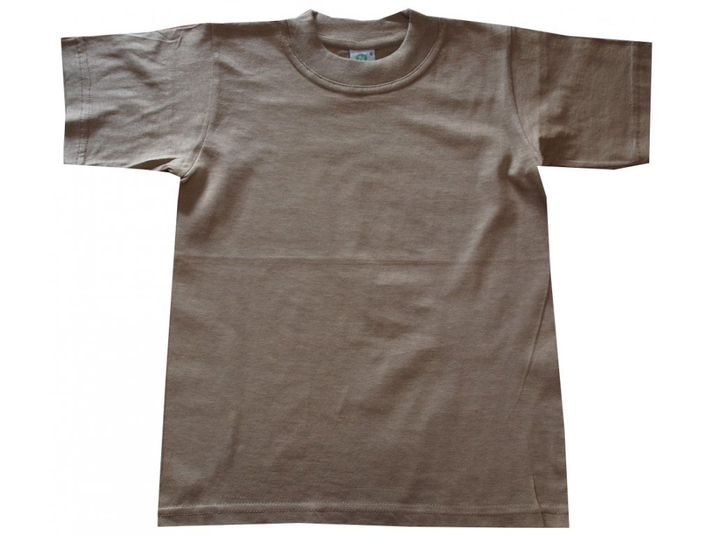Dětské bavlněné trička v hnědé barvě je o gramáži 150g/m2. Tričko je bez potisku, výstřih je ukončen do oblouku.