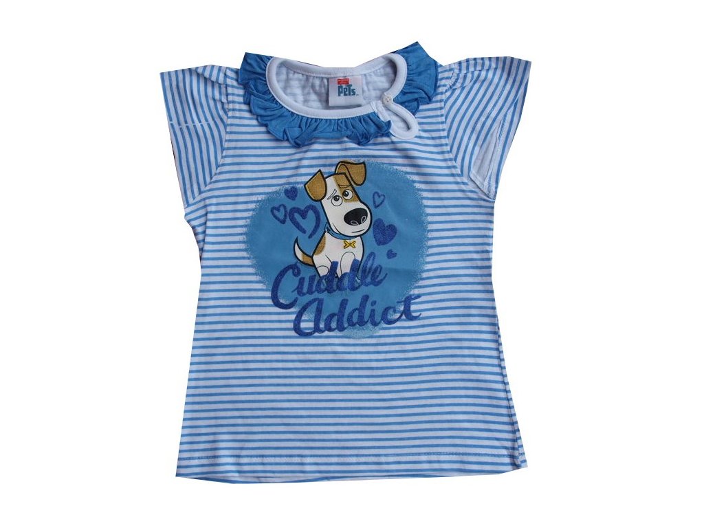 Pets tričko je barvy modré a je příjemné na nošení díky materiálu 100% bavlny. Tričko má krátký rukáv.