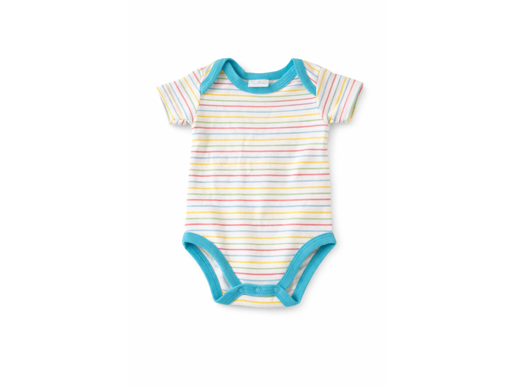 Dětské body s krátkým rukávem ze 100% bavlny. Pohodlný střih, prodyšný materiál a praktické zapínání na zaklapovací patenty pro snadné přebalování.