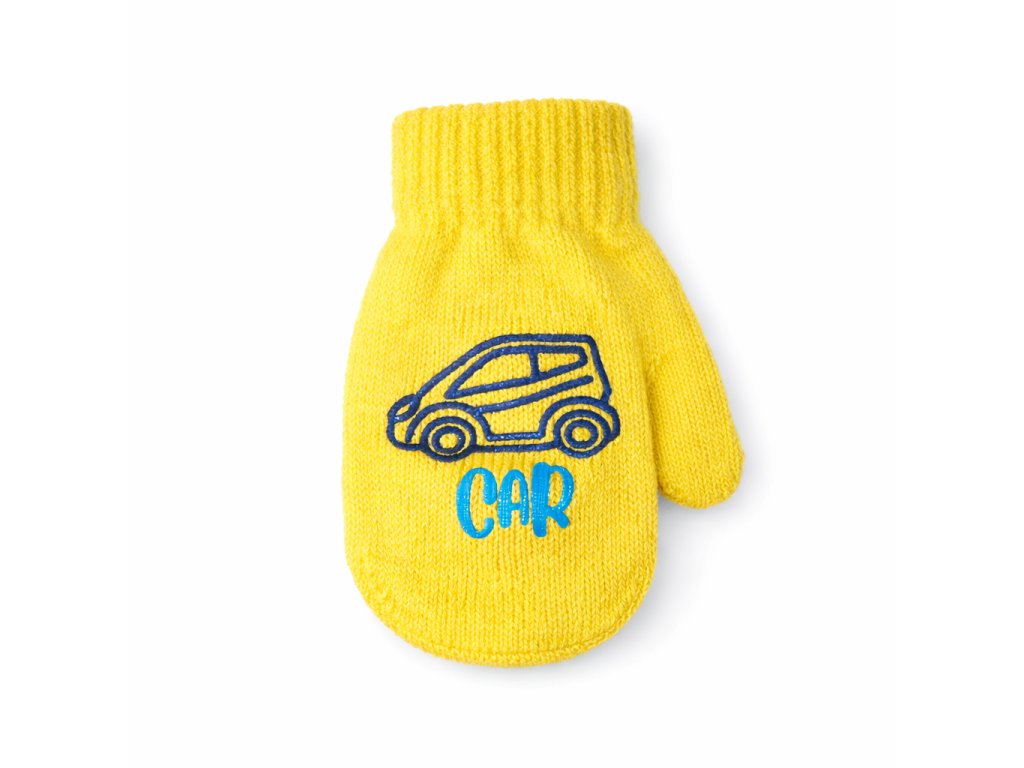 Vyteplené dětské palčáky pro nejmenší s veselým obrázkem, univerzální velikost 14 cm. Měkký a pružný materiál (85 % akryl, 15 % elastan) pro maximální pohodlí v zimě.