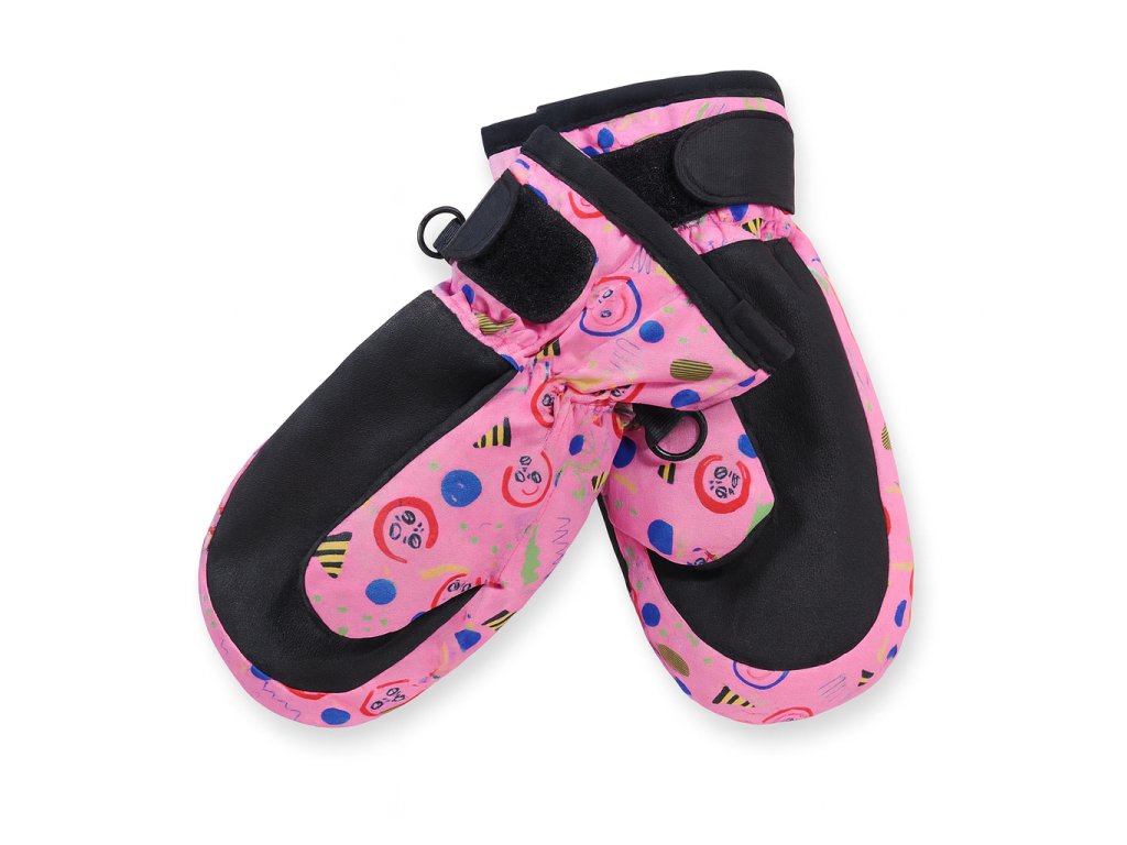 Spodní část rukavic je zesílená proti oděru, což výrazně prodlužuje jejich životnost při každodenním používání. V oblasti zápěstí se nachází pružná guma, díky které rukavice dobře drží na ruce. Další výhodou je nastavitelný suchý zip, který umožňuje upravit velikost a přizpůsobit rukavice přesně ručičce dítěte.