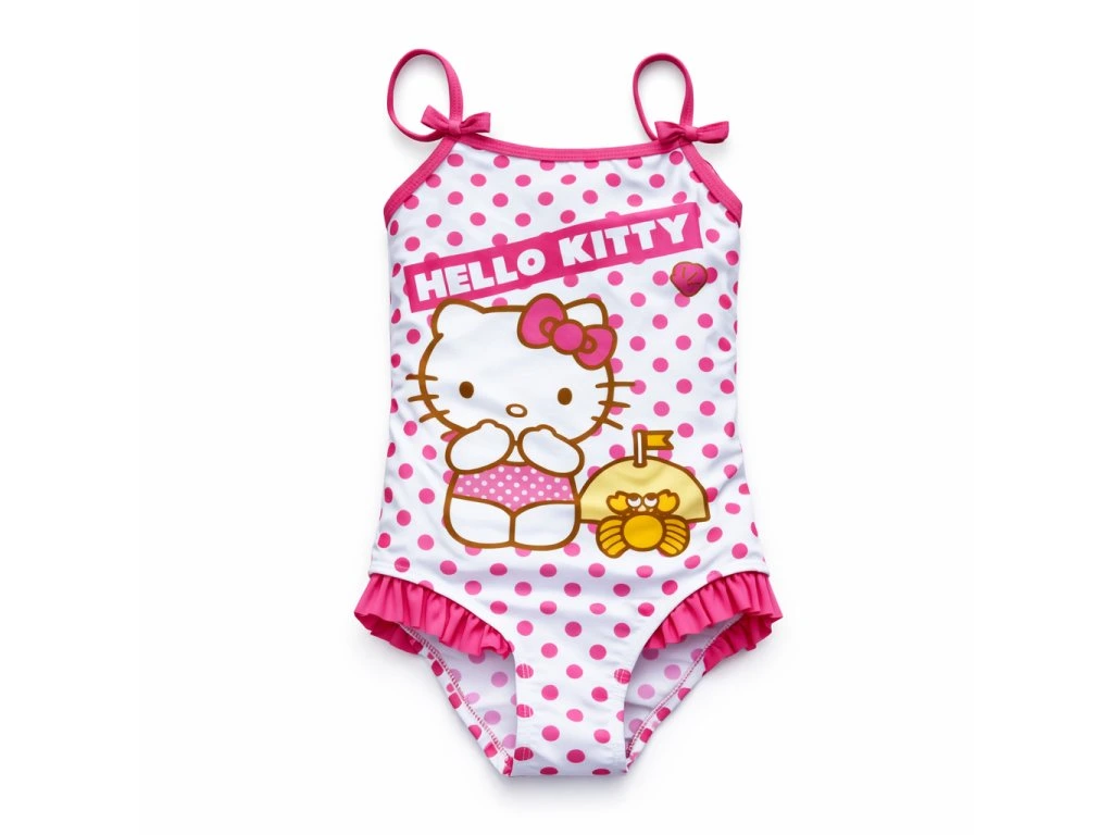 Dívčí jednodílné plavky Hello Kitty z kvalitního materiálu (80 % polyester, 20 % elastan). Pohodlné, pružné a rychleschnoucí – ideální k bazénu i moři.