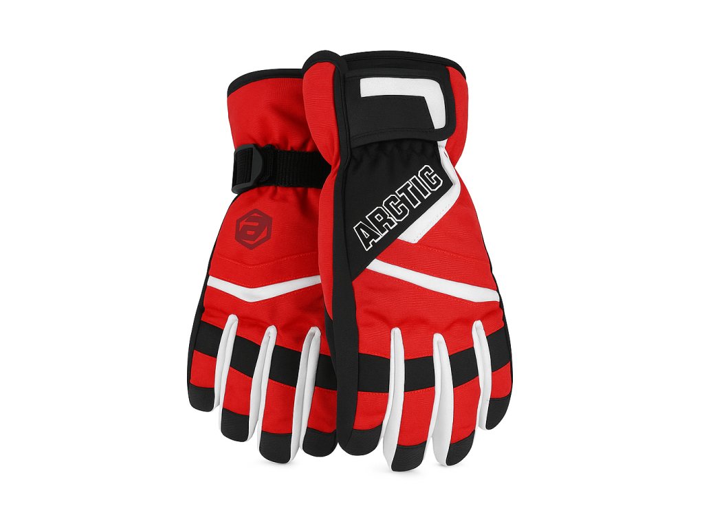 Stylové červené dětské zimní rukavice Arctic zajistí vašim dětem teplo a sucho i v těch nejchladnějších dnech. Spodní díl rukavic je vyteplený měkkou fleecovou podšívkou, která poskytuje příjemné teplo a komfort při nošení. Vrchní vrstva je nepromokavá, díky čemuž chrání ruce před sněhem, větrem i vlhkostí.
