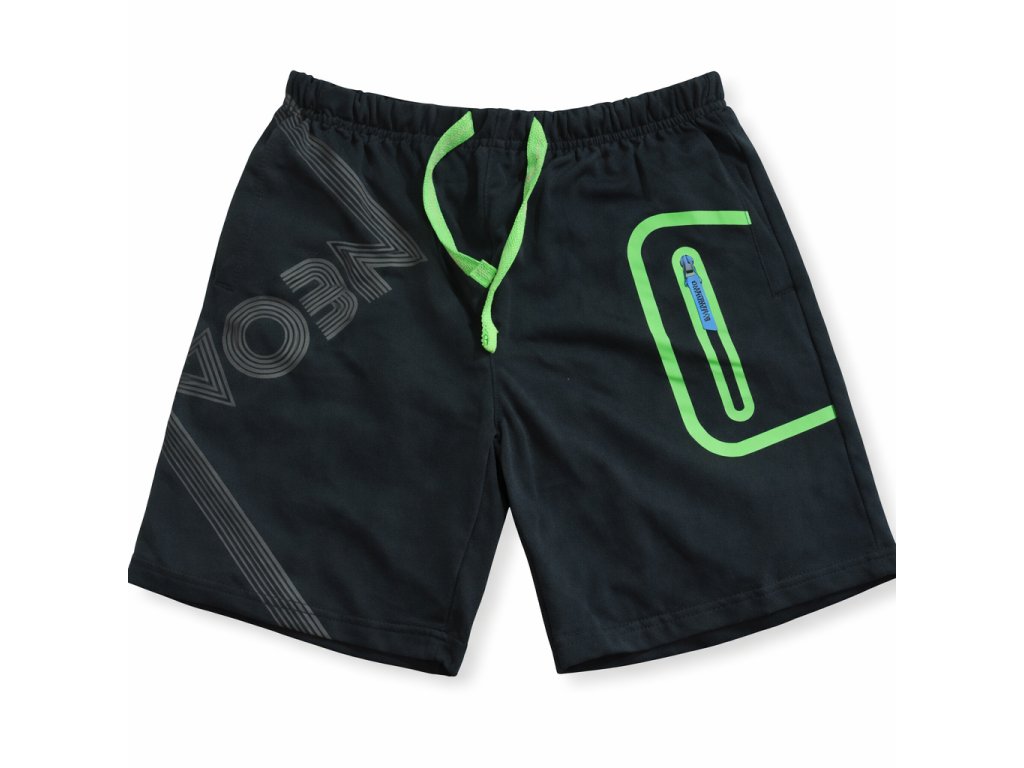 Bavlněné dětské kraťasy s kapsami na zip, reflexními prvky a moderním nápisem. Pohodlný elastický pas, ideální na sport i běžné nošení. Materiál 100 % bavlna.