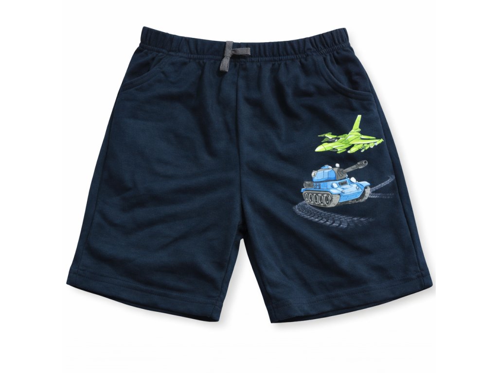 Dětské chlapecké kraťasy ze 100% bavlny s pružnou gumou v pase, šňůrkou a bočními kapsami. Pohodlné letní kraťasy na volný čas, do školy i na hřiště.