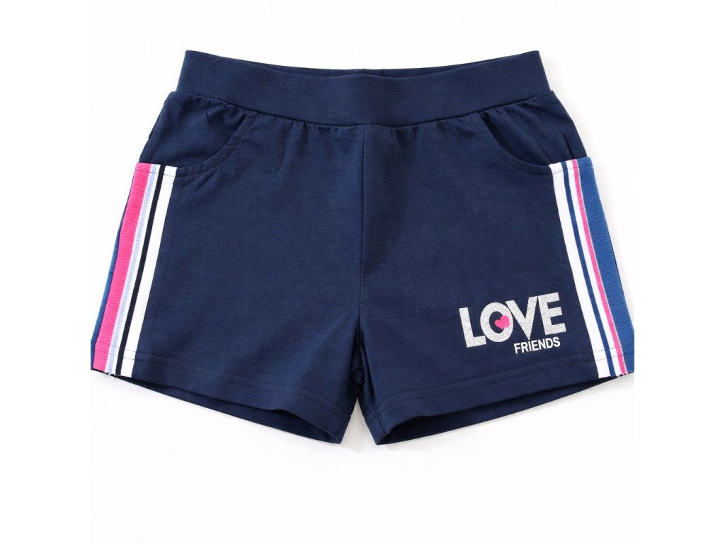 Dívčí elastické kraťasy s kapsami a nápisem LOVE FRIENDS. Pohodlný střih, kvalitní materiál 95% bavlna a 5% elastan. Ideální na každý den.