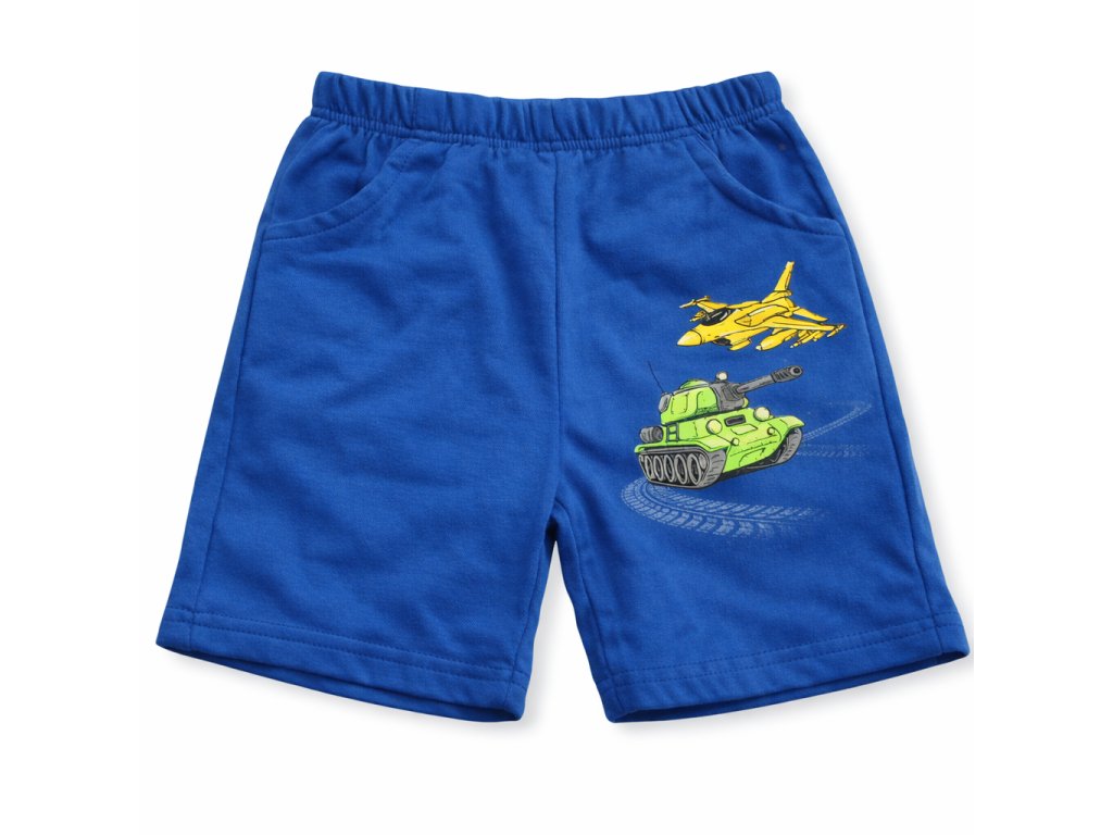 Chlapecké kraťasy s pružným pasem, boční kapsy, pohodlný materiál 65 % bavlna, 35 % polyester. Ideální na léto, sport i volný čas.