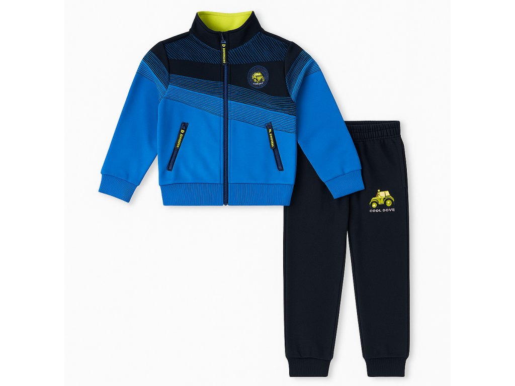 Pohodlná dětská souprava z kvalitního materiálu je ideální na doma, školu i volný čas. Mikina na zip má praktické kapsy po stranách, tepláky jsou zakončené pružným nápletem, díky kterému perfektně sedí.
