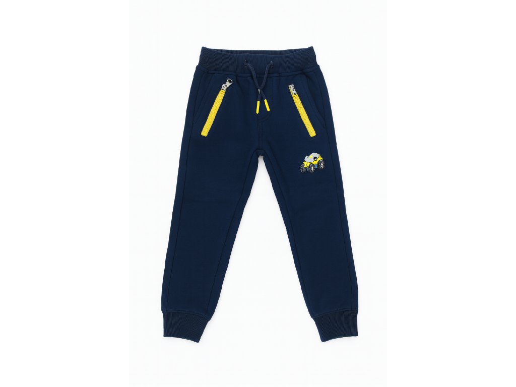 Dětské slabé tepláky s potiskem, kapsami a náplety. Pohodlný střih, pružný pas a lehký materiál z 65 % bavlny. Ideální do školy, na sport i volný čas.