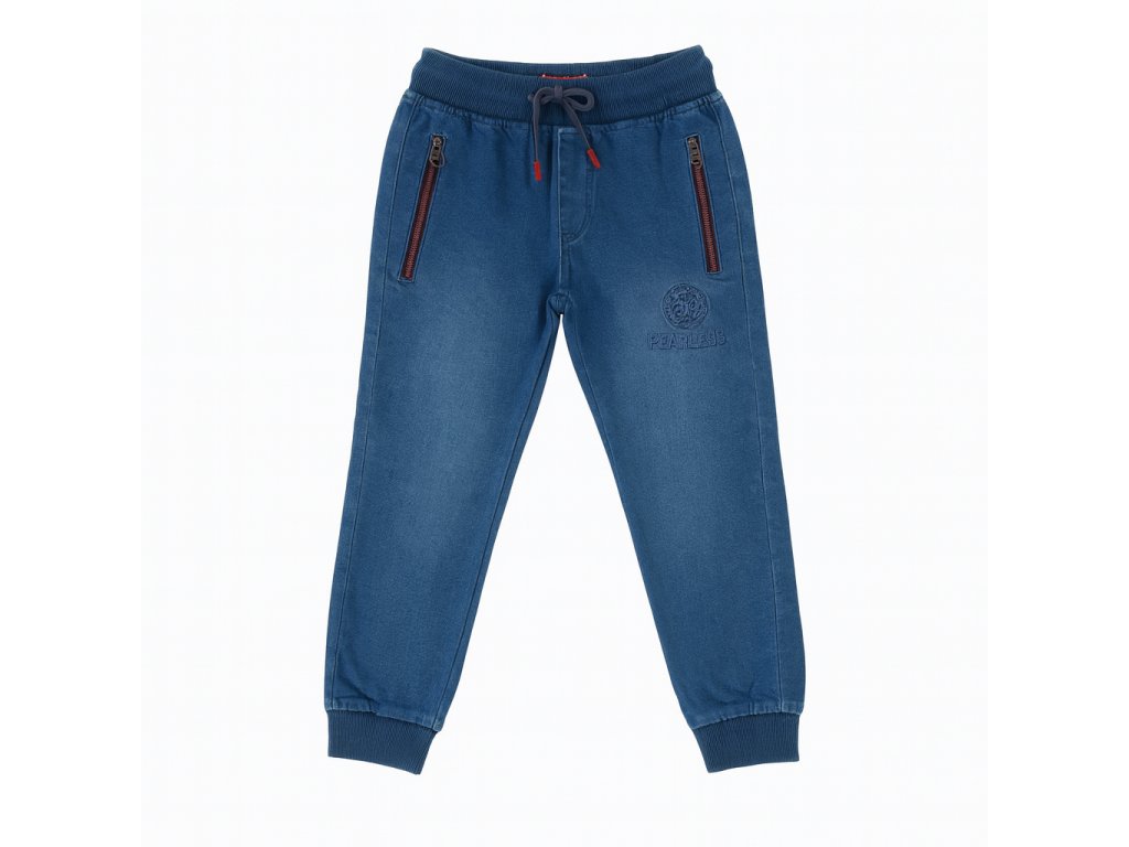 Tepláky mají praktické kapsy na zip, které bezpečně uchovají drobnosti – klíče, kapesník či malé poklady z dětských dobrodružství. Zakončení nohavic do nápletů zaručuje, že tepláky dobře drží na místě a neomezují pohyb. Díky modernímu jeansovému odstínu se snadno kombinují s mikinou, tričkem nebo bundou.