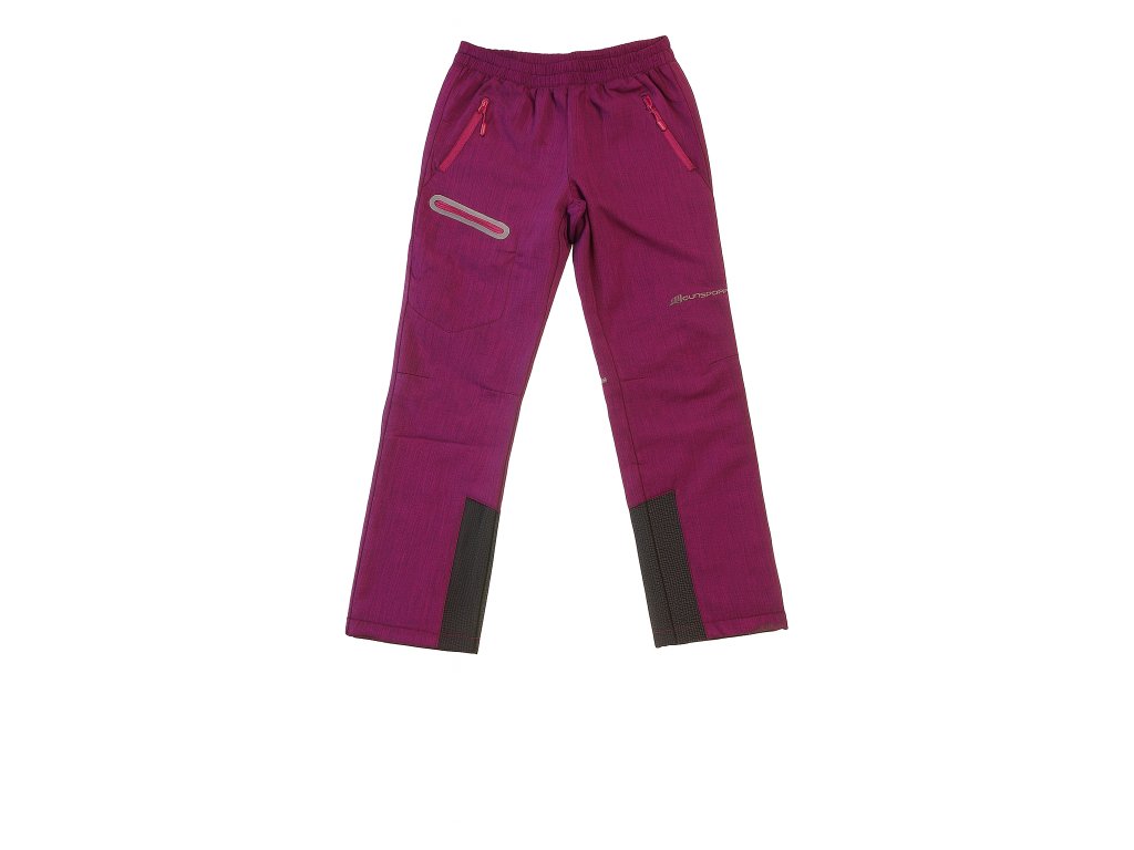 Hřejivé softshellové tepláky s jemným chloupkem, kapsami na zip a reflexními prvky. Pohodlný střih, pružný pas a spodní lem do gumy.
