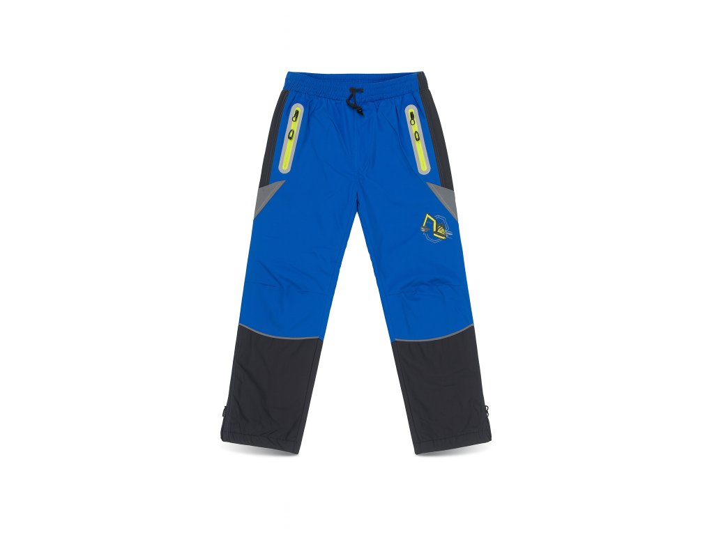 Chlapecké šusťákové tepláky z lehkého, odolného materiálu s hřejivou fleecovou podšívkou. Mají praktické kapsy na zip, spodní lem nohavic se může stáhnout a pohodlný střih pro volný pohyb. Materiál: 100 % polyester – ideální pro venkovní aktivity i chladnější dny.