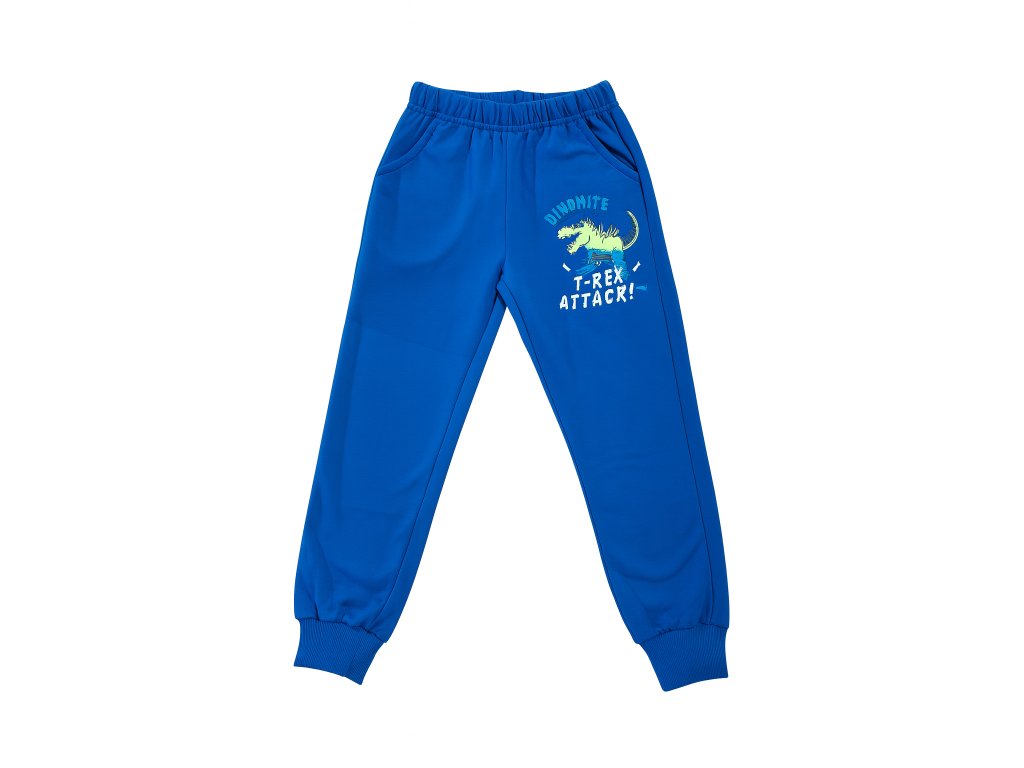 Hřejivé softshellové tepláky s jemným chloupkem, kapsami na zip a orrázkem dinosaura. Pohodlný střih, pružný pas a spodní lem do gumy.