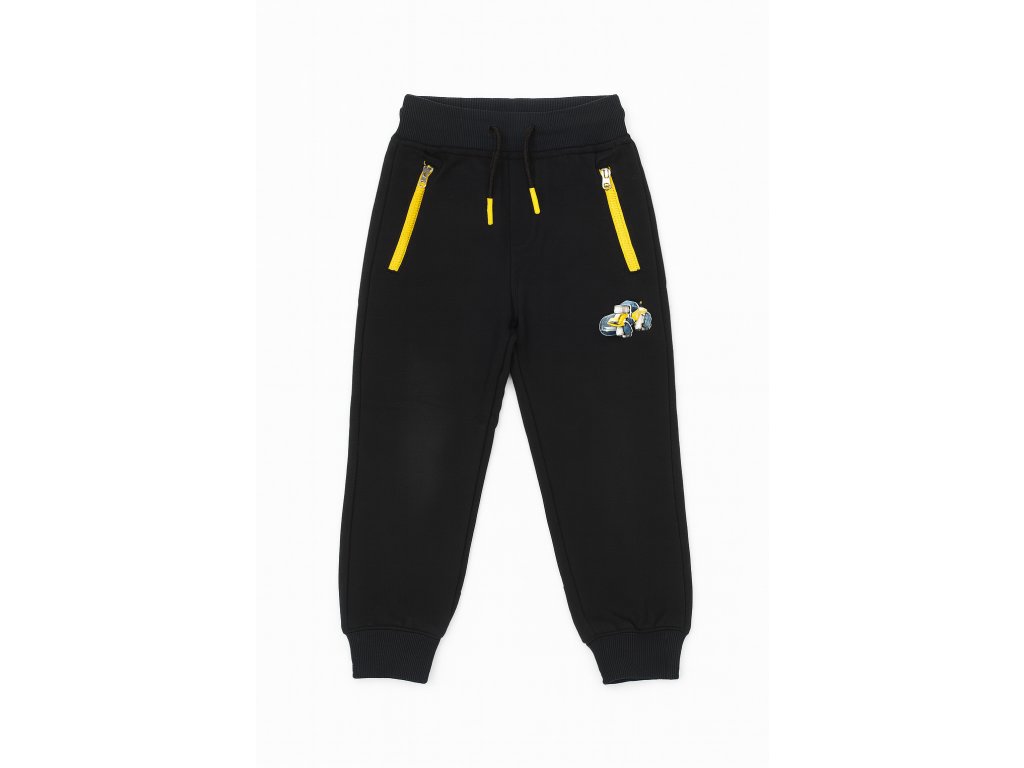 Dětské slabé tepláky s potiskem, kapsami a náplety. Pohodlný střih, pružný pas a lehký materiál z 65 % bavlny. Ideální do školy, na sport i volný čas.