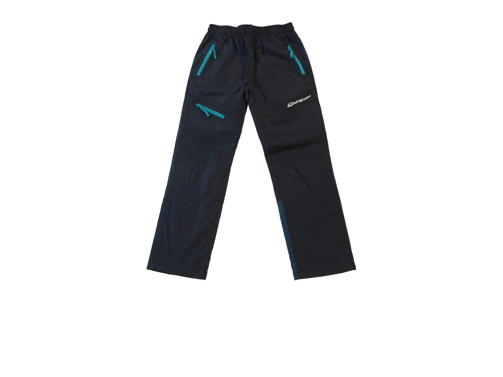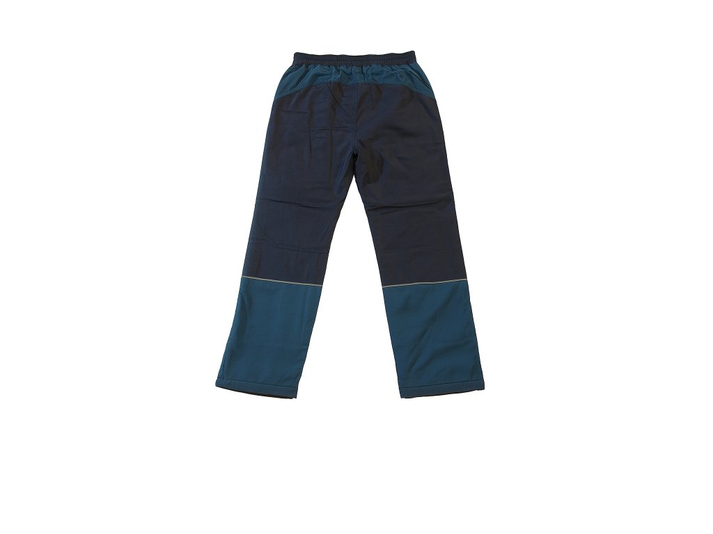 Šusťákové tepláky s fleecovým zateplením, kapsami na zip a reflexními prvky. Pružný pas se šňůrkou, spodní lem do gumy. 100% polyester.