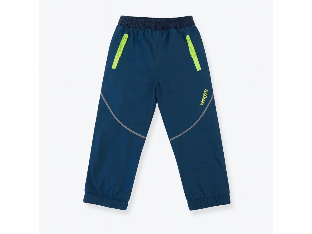 Chlapecké šusťákové tepláky z lehkého, odolného materiálu s hřejivou fleecovou podšívkou. Mají praktické kapsy na zip, lem nohavic na gumu a pohodlný střih pro volný pohyb. Materiál: 100 % polyester – ideální pro venkovní aktivity i chladnější dny.