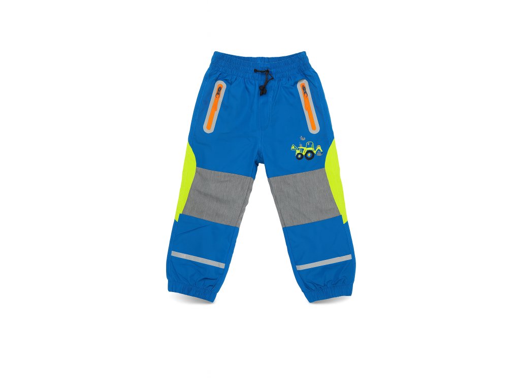Chlapecké šusťákové tepláky z lehkého, odolného materiálu s hřejivou fleecovou podšívkou. Mají praktické kapsy na zip, lem nohavic na gumu a pohodlný střih pro volný pohyb. Materiál: 100 % polyester – ideální pro venkovní aktivity i chladnější dny.
