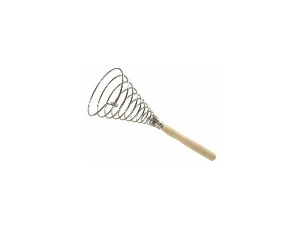 Spirálová metla na šlehání je profesionální kuchyňské náčiní vyrobené z nerezové oceli a s dřevěnou rukojetí. Metla má délku cca 30cm.