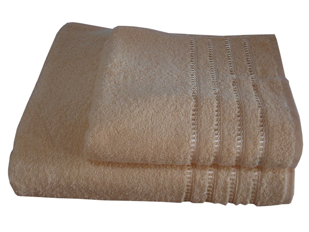 Osuška má vzorované okraje. Každý kus je luxusně balený zvlášť v plastovém pouzdře. Osušky jsou barvy světle žluté - vanilkové.