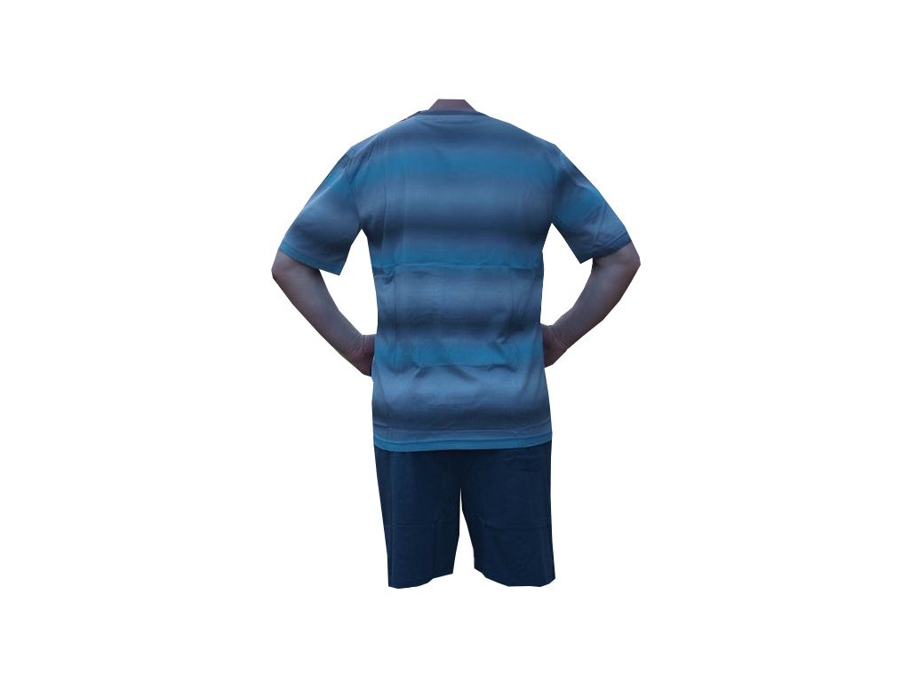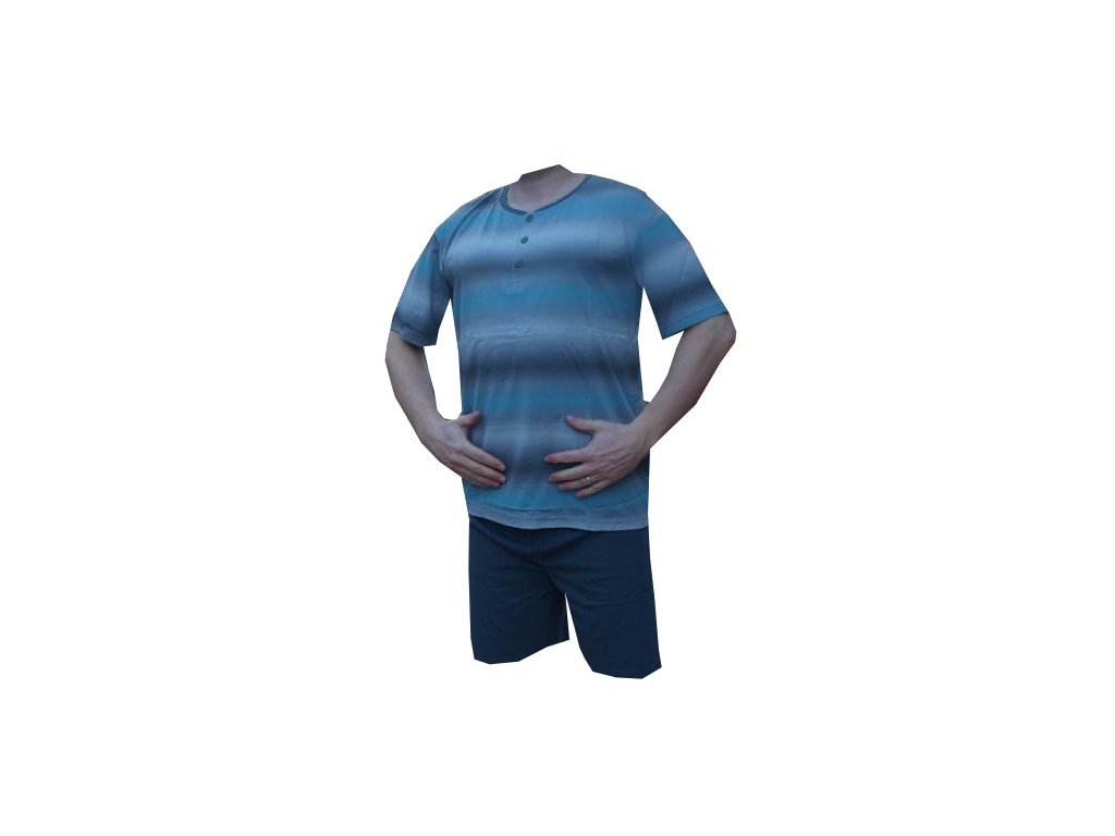 Pánské pyžamo bavlněné s krátkou nohavicí je vyrobeno ze 100% bavlny. Výstřih u krku je do O se třemi knoflíčky. Na zadní straně pyžamových kraťasů je kapsička. Pyžama jsou barvy světle šedé.