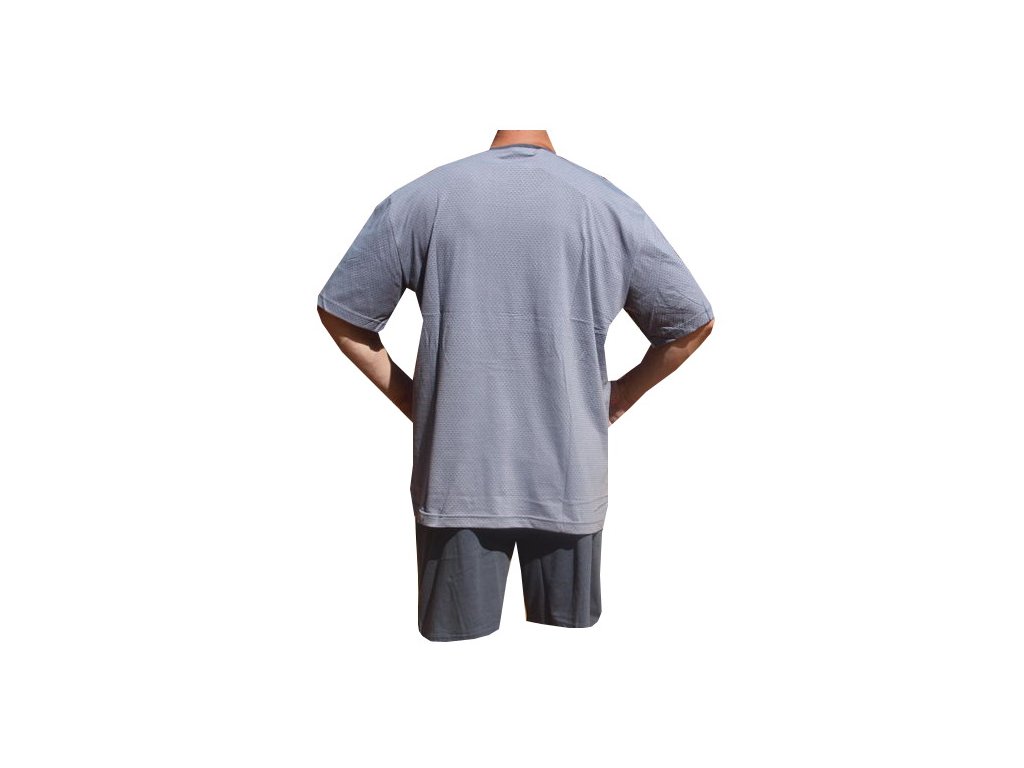 Pyžama bavlněné s krátkou nohavicí jsou vyrobené ze 100% bavlny. Výstřih u krku je do V. Pyžamový kabaték má na levé horní straně kapsičku. Pyžama jsou barvy šedé s drobným motivem .