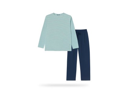 Pánské pyžamo froté hřejivé je barvy modré. Froté pyžama mají horní i spodní díl s ukončen náplety. Pyžama jsou větší, při objednání doporučujeme objednat velikost o 1 číslo menší, než je velikost požadovana. Pyžamo je ukončené u krku výstřihem O s knoflíčky. Kalhoty jsou v pase na pružnou gumu.