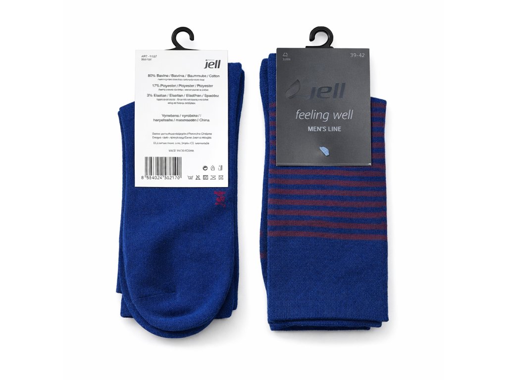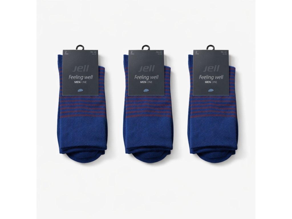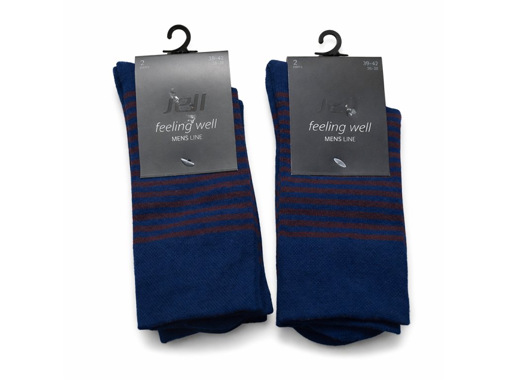 Ponožky pánské jsou velice příjemné na nošení díky materiálu 80% česaná bavlna + 17% příměs + 3% elastan. Ponožky mají řetízkovanou špičku a klasickou délku. Ponožky jsou balené v sadě po dvou párech, cena je za celou sadu. Ponožky jsou barvy modré.