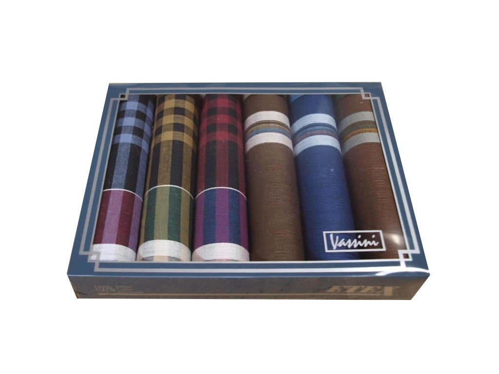 Kvalitní bavlněné kapesníky balené po šesti kusech v krabičce. Kapesníky jsou vyrobeny z česané bavlny, rozměr kapesníků je klasický cca 40x40cm.