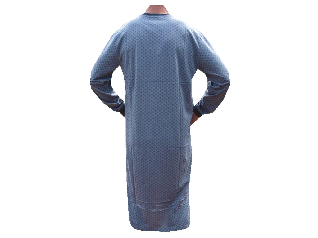 Noční košile pánská s dlouhým rukávem barvy šedé se vzorem, je vyrobena z velice příjemného materiálu 100% bavlna. Košile má výstřih u krku do V a na levé horní straně kapsičku, ukončení rukávů je do nápletů. Doporučená teplota údržby je 40C.
