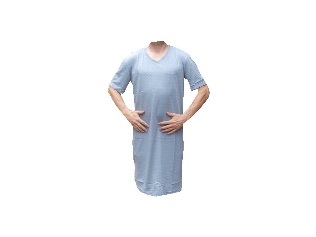Pánská noční košile barvy světle šedé s drobným vzorečkem jsou s krátkým rukávem, je vyrobená z příjemného materiálu - bavlna 100%, košile je velice příjemná na nošení. U krku je ukončená výstřihem V.