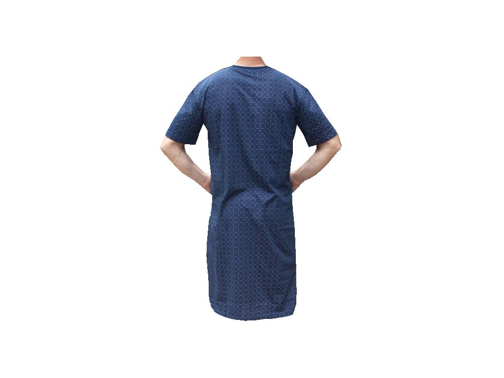 Pánská noční košile barvy tmavě modré s drobným vzorečkem jsou s krátkým rukávem, je vyrobená z příjemného materiálu - bavlna 100%, košile je velice příjemná na nošení. U krku je ukončená výstřihem V.