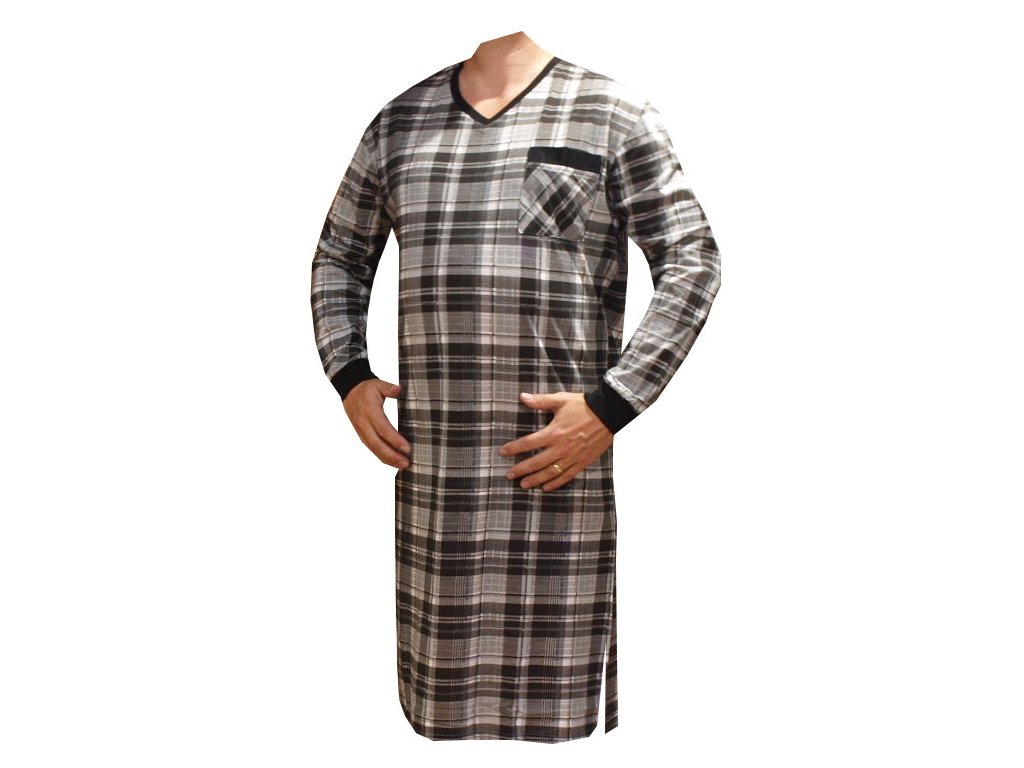 Pánská noční košile vzoru kostky, je vyrobena z materiálu 100% bavlna. Noční košile má dlouhý rukáv a výstřih u krku do V, na pravé straně je kapsička.