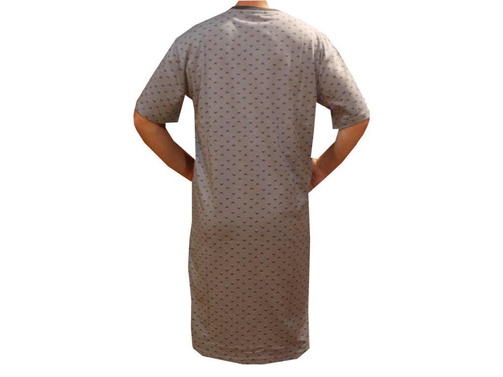 Noční košile pánská s krátkým rukávem barvy šedé, je vyrobena z velice příjemného materiálu 100% bavlna. Košile má výstřih u krku do V a na levé horní straně kapsičku.