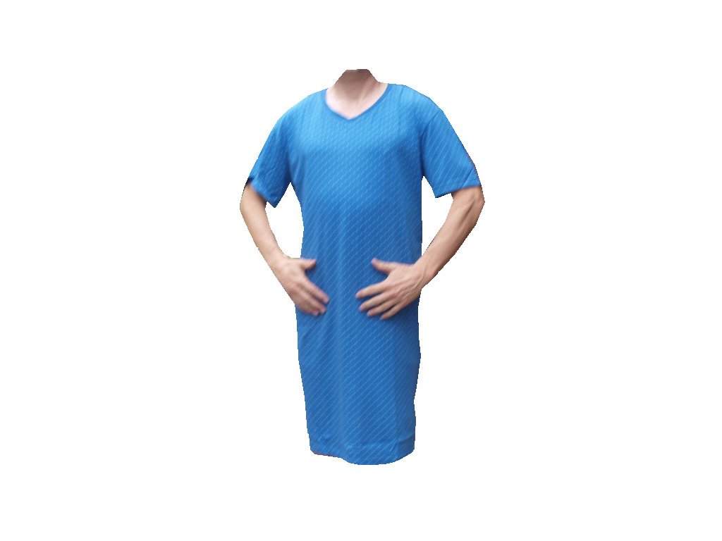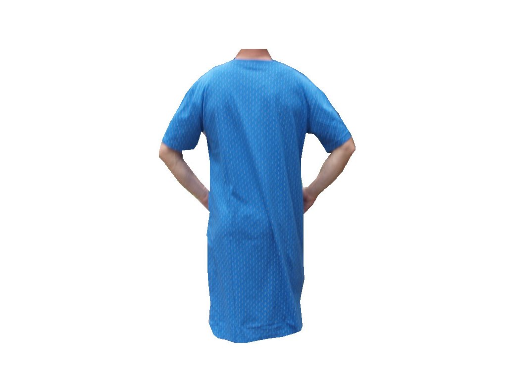 Pánská noční košile barvy světle modré s drobným vzorečkem jsou s krátkým rukávem, je vyrobená z příjemného materiálu - bavlna 100%, košile je velice příjemná na nošení. U krku je ukončená výstřihem V.