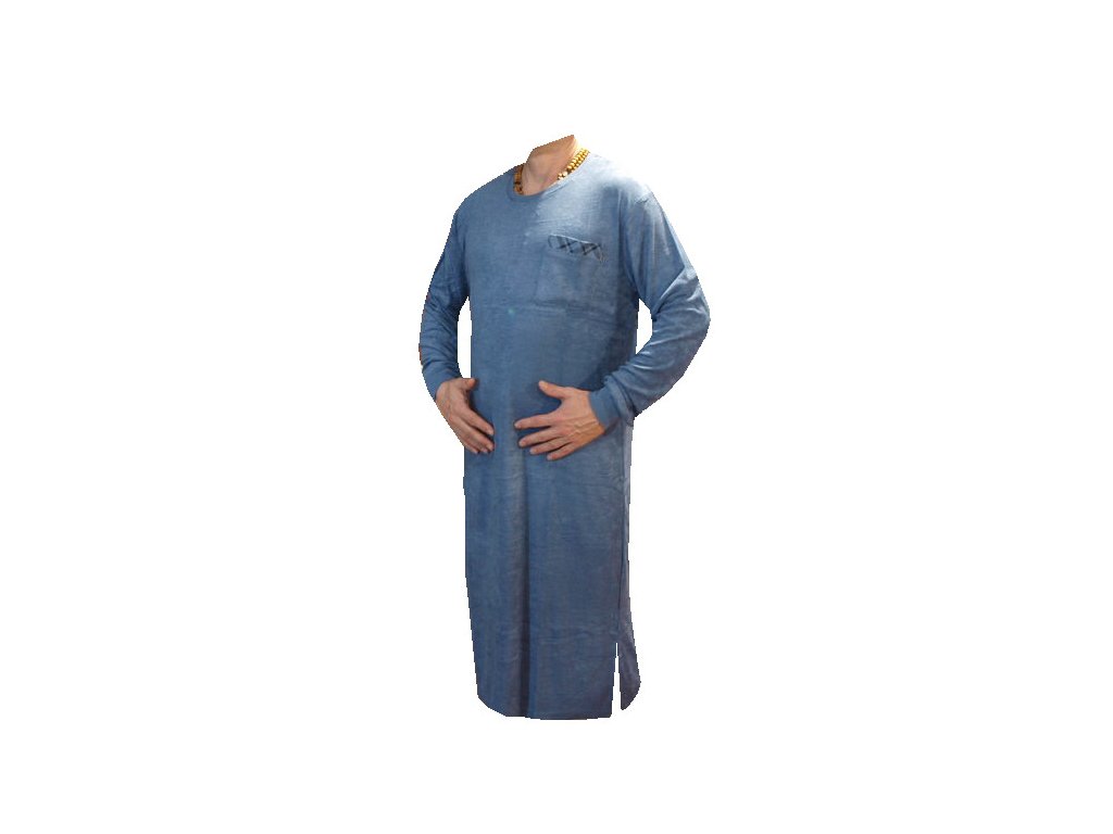 Teplá pánská froté noční košile z 100% bavlny s dlouhým rukávem, náplety a kapsičkou na levé straně. Pohodlný střih ideální pro chladnější noci.