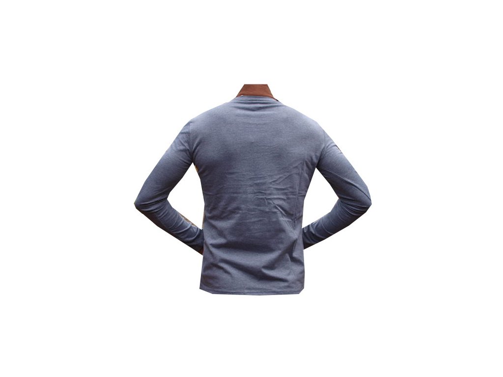 Triko s dlouhým rukávem vyrobené ze 100% bavlny je barvy světle šedé. U krku je volný O výstřih.