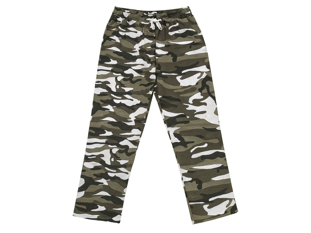 Stylové maskáčové tepláky z kvalitního materiálu (65 % bavlna, 35 % příměs) spojují pohodlí a odolnost. Jsou ideální pro volný čas, sport i běžné nošení.
