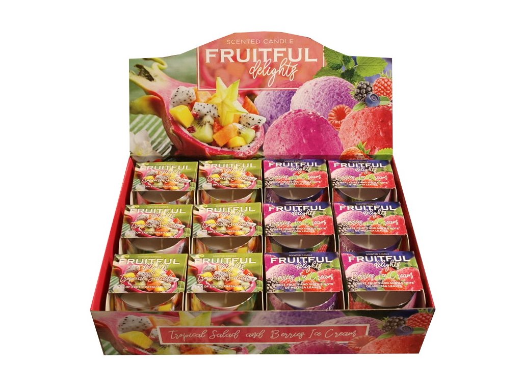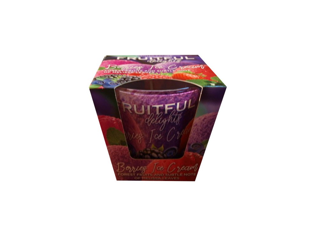 Vonná svíčka s vůní ovocné zmrziny krásně provoní váš domov. Milý dáreček pro vaše nejbližší. Svíčka je vhodná i jako doplněk do bytu. Svíčka je zabalena do dárkové papírové krabičky. Velikost svíčky je cca 8 cm.
