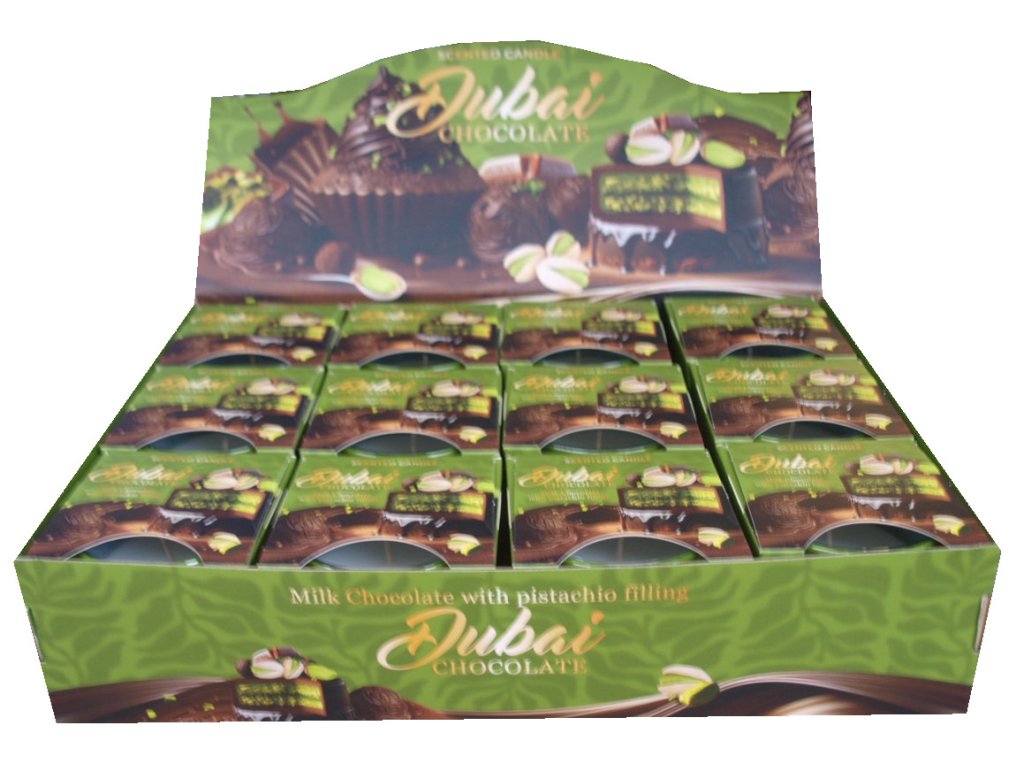 Vonná svíčka Dubai čokoláda, krásně provoní Vaše okolí. Milý dáreček pro vaše nejbližší. Svíčka je vhodná i jako doplněk do bytu. Svíčka je zabalena do dárkové papírové krabičky. Velikost svíčky je cca 8 cm.